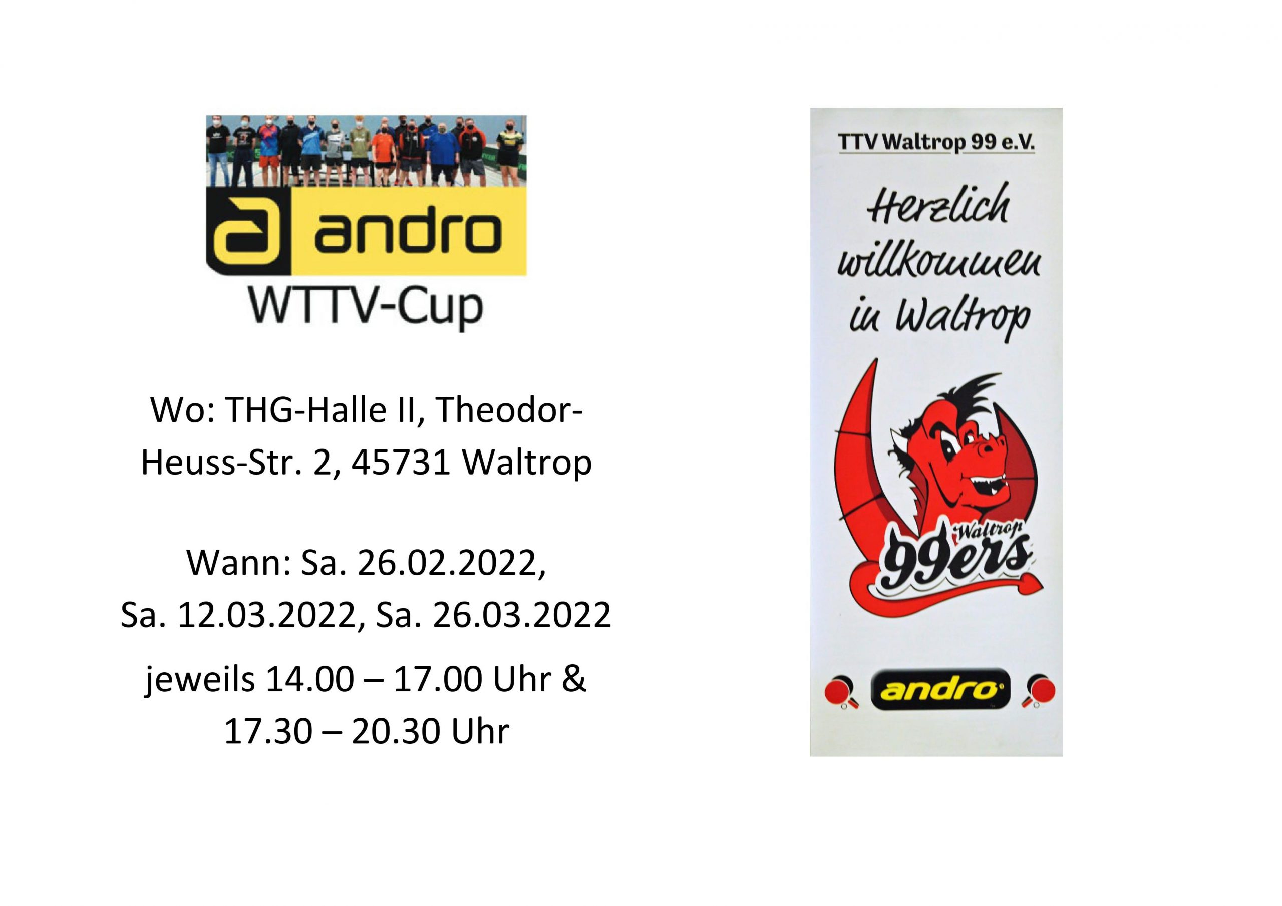 Der TTV Waltrop lädt zu folgenden Turnieren im andro-WTTV-Cup ein: