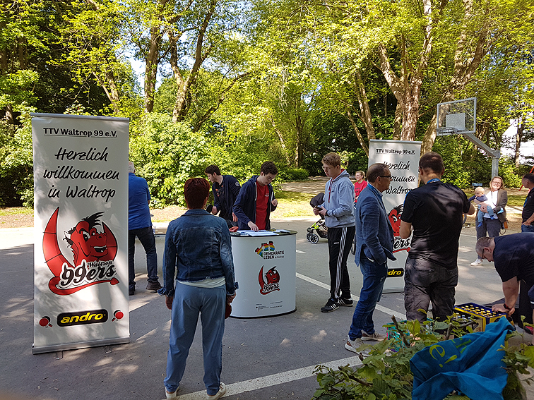 Der TTV Waltrop 99 e.V. begrüßt ganz herzlich alle Aktiven, Zuschauer, Vereinsmitglieder und Freunde/Förderer zur Turnierserie 2. Moselbachpark-TT-Cup. Das neue Konzept trägt Corona Rechnung und vereint Sport mit Spaß und Bewegung an der frischen Luft. Dabei spielen naturgemäß Alter, Herkunft, Geschlecht oder Hautfarbe keine Rolle. Der gemeinsame Spaß an der schnellsten Rückschlagsportart der Welt vereint alle Beteiligten. In diesem Zusammenhang wird die Turnierserie im Rahmen des Förderprogrammes „Demokratie Leben“ von der Bundesregierung unterstützt.